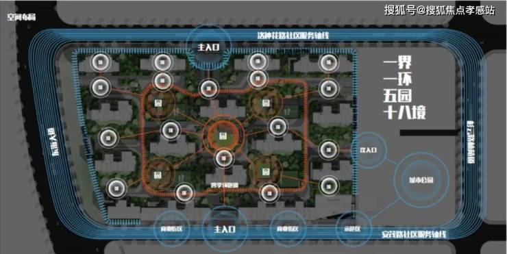 当然,【上实·望海】为了更好的与这自然生态相结合,在社区内打造了一界、一环、五园、十八境的景观。