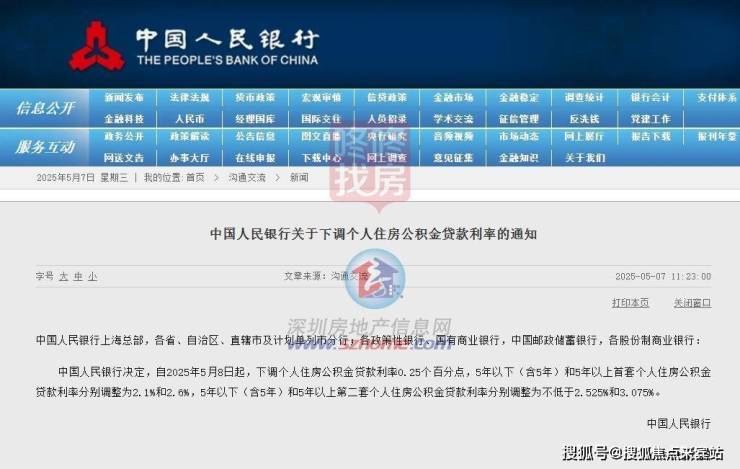 5月7日上午,中国人民银行发布《关于下调个人住房公积金贷款利率的通知》。