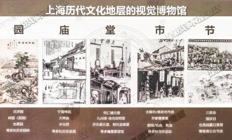 老城厢的“园、庙、堂、市、节”等历史古迹、独特的民居建筑及市井文化,不仅是上海这座历史文化名城的瑰宝,也是老城厢的“魂”,共同组成了上海“历代文化地层”的视觉博物馆。