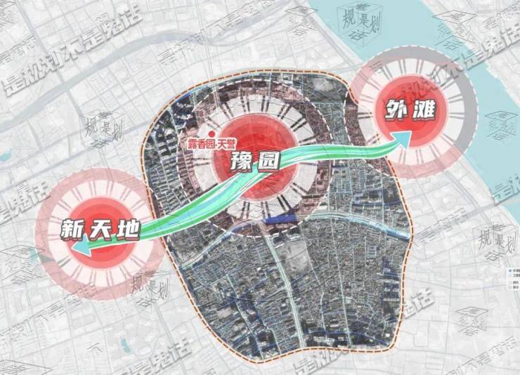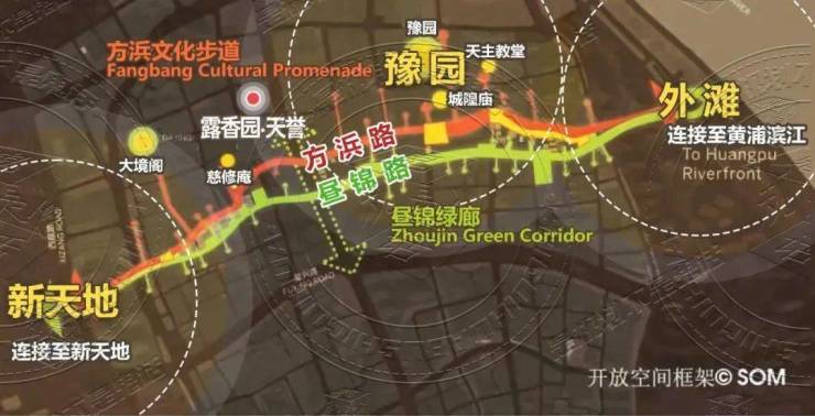 “通过纵横的骨架结构,老城厢与新天地、人民广场、外滩金融带相连接,将黄浦区主要的核心板块编织成网。老城厢作为重要的轴带核心,将通过城市更新重新成为上海核心区的核心版图。”