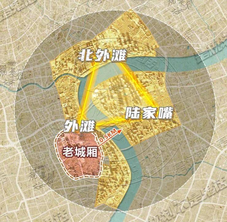 而且,老城厢还是外滩-陆家嘴-北外滩“黄金三角”的核心腹地,与外滩“一街之隔”、“零距离”,与陆家嘴“0.5公里”。