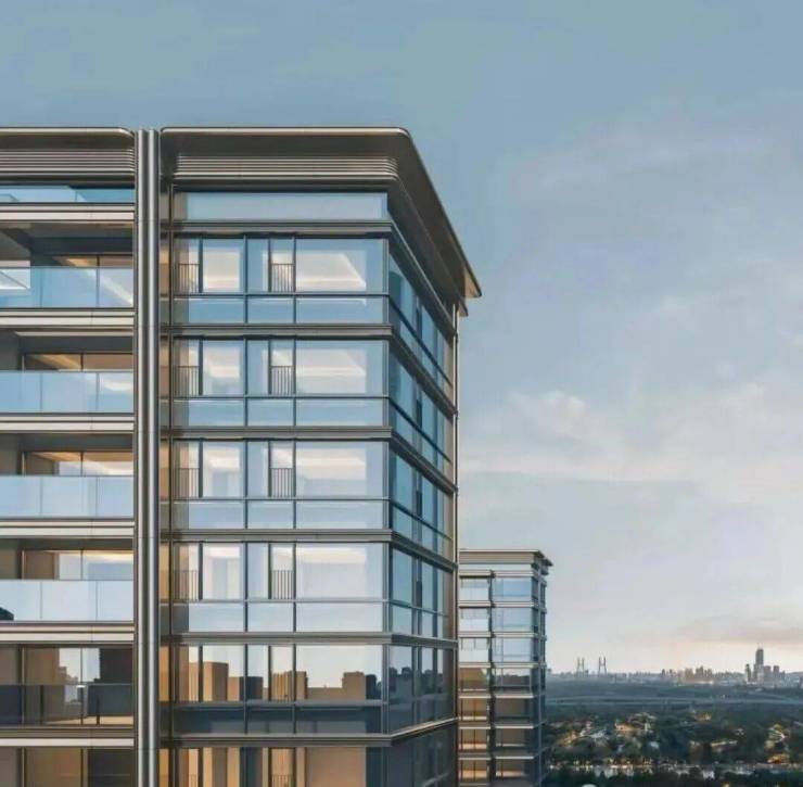 立面方面, 高层大面积采用玻璃+铝板,极高的窗墙比将天光云影尽纳其中,270°转角窗带来全景舱式的奢阔视野。整座建筑既庄重又轻盈,既具国际风范,又蕴含东方向上的精神意境。