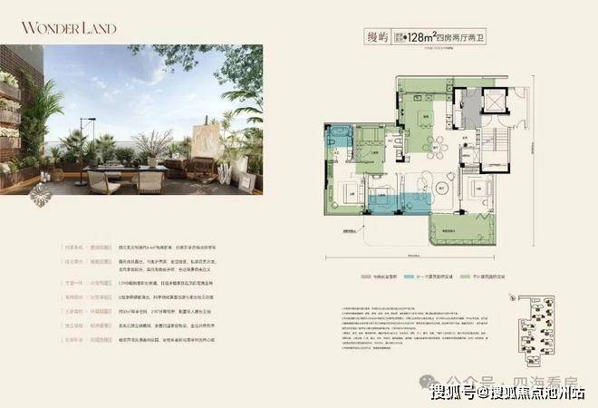 128㎡四房两厅两卫:实得约170㎡,品质改善,270°环幕视野