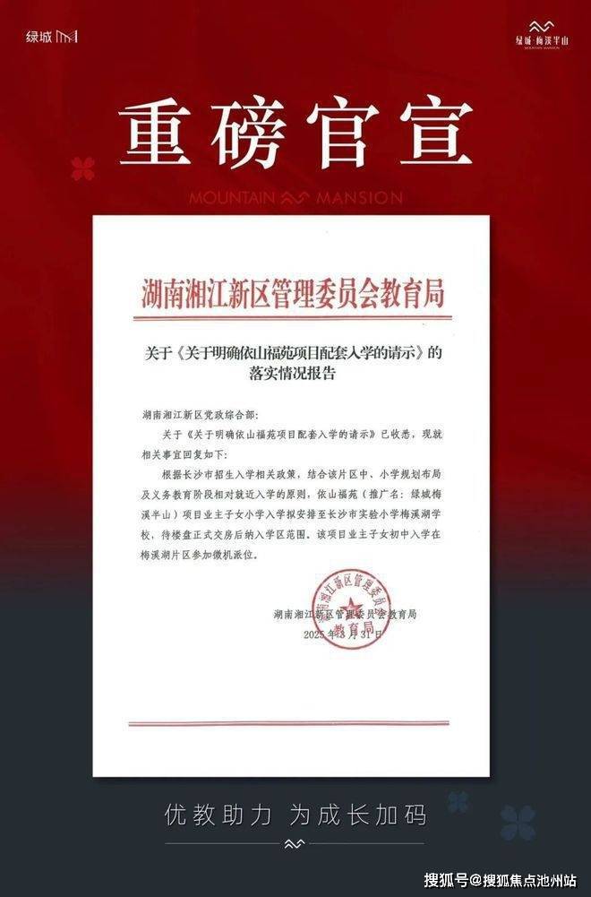 值得一提的是,长沙市实验小学梅溪湖学校距离项目仅500米,而据湖南湘江新区管理委员会教育局2025年3月31日红头文件显示,梅溪半山业主子女小学拟配套入读【长沙市实验小学梅溪湖学校】,初中参与【梅溪湖片区】学校派位。
