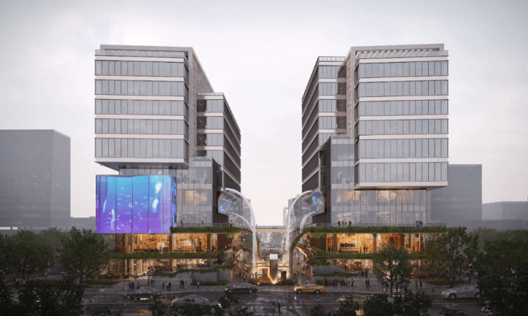 设计亮点:由北京建筑设计研究院邵韦平大师主笔设计,采用 4 栋花园式围合布局,将生态自然引入办公空间,打造沉浸式花园办公,达到中国绿色建筑三星标准,应用光伏发电科技。
