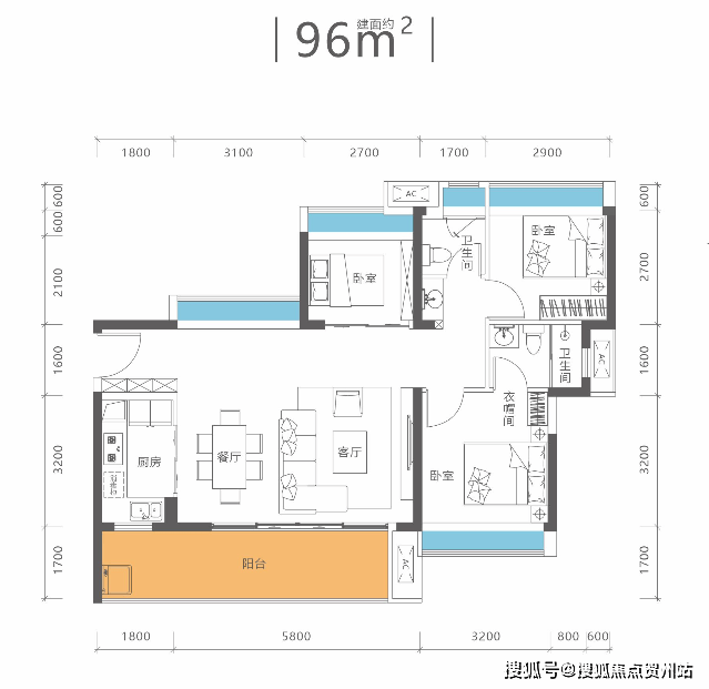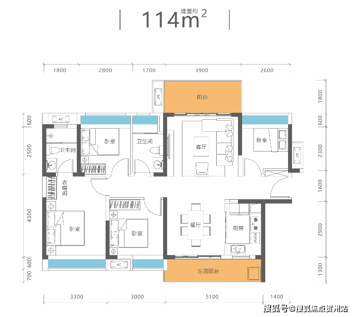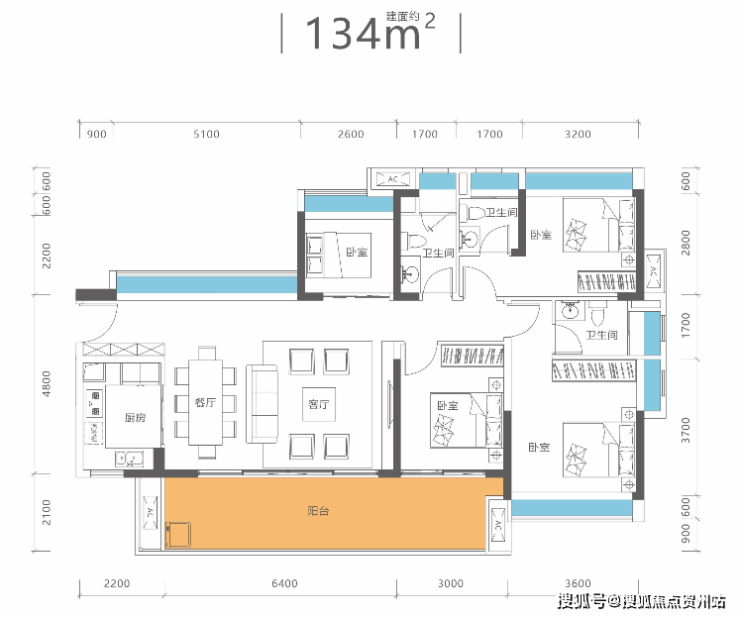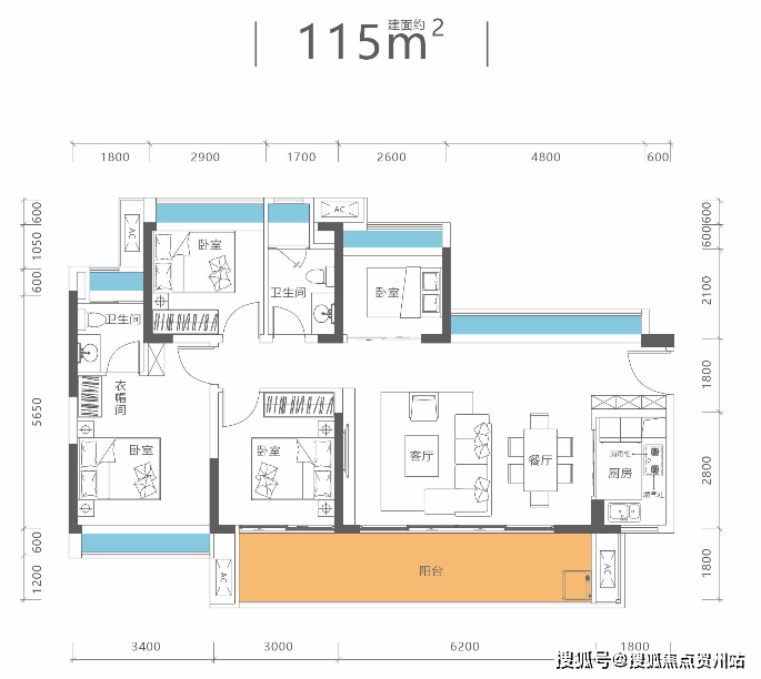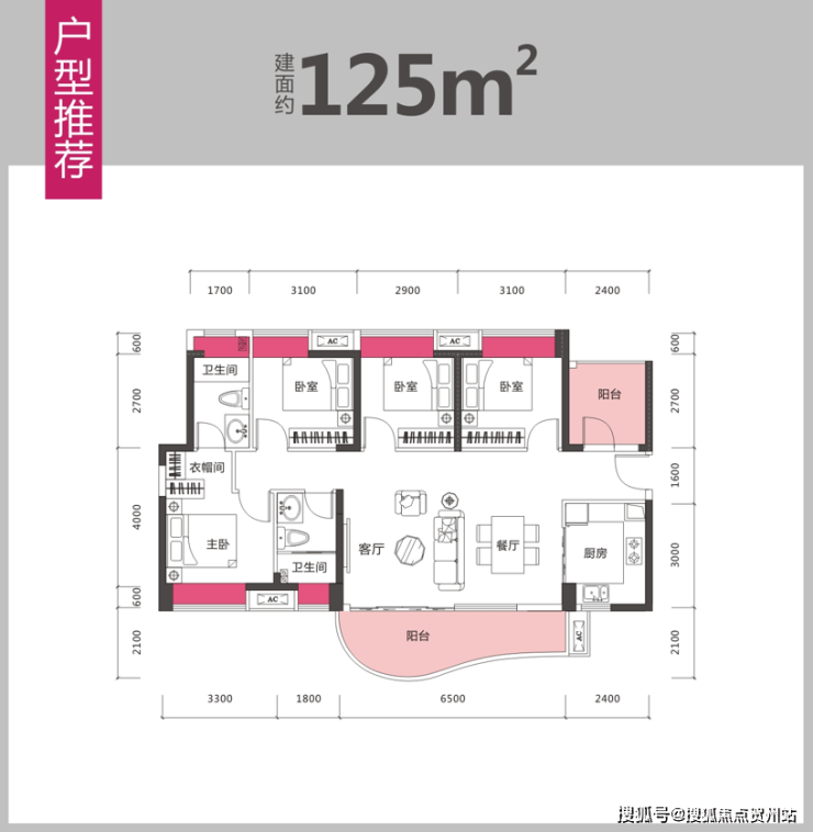 端头位:总赠送约270㎡,总面积达450㎡,赠送率160%;花园面积约100㎡