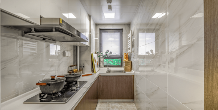 L型厨房很宽敞,两个人一起做饭也施展得开手脚。南侧的两个卧室也足够大,北侧次卧做儿童房或者书房都很合适,足够满足三代人的居住需求。