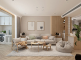 整体风格定位为轻奢风格,色调以灰色、原木色、白色为主,局部搭配橘色、咖色作为点缀,功能上,客厅空间以会客休闲为主,卧室空间除主卧以外,增加儿童房以及书房功能,儿童房以榻榻米的形式定制,可以增解决家里一大部分收纳的功能书房功能主要为男主人提供工作以及看书的区域。 客厅电视墙中间以大理石为背景,旁边大尺