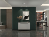 本案为现代风格,在设计时考虑了家庭成员的数量,访客量和家族风格,它通过摆设家具,建立了一个稳定的区域,在所提供的空间里满足需求。 墨绿色的玄关背景墙搭配白色艺术挂画,简约大气 大理石电视背景墙面,让简约的额空间展现出高级的质感,设计有自己特色的居室风格。 简洁沙发和茶几,沙发做成榻榻米一体形式,予以