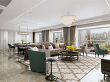 本案为大跃层式260平米户型,顶楼带了一个70平方的露台,设计选择为欧式风格。在欧式风格的主元素,融入了现代的生活元素,欧式的居室有的不只是豪华大气,更多的是惬意和浪漫。 一楼主要以公共空间为主,功能区域分明。展现了结构与形式、的紧密关系 中空设计使楼上楼下有效结为一体,有利于一楼的采光、通风效果,