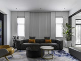 家具高饱和度颜色,高级灰为肌底,产生强烈的视觉冲击,深色底色使画面产生了一种纵深感。