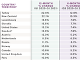 近日,研究机构莱坊发布2021年排名前列季《全球楼价指数》,该指数追踪和比较全球56个市场的一般住宅市场表现。 数据显示,截至今年3月的12个月,全球平均房价按年上升7.3%,增长速度是自2006年第四季度以来较快增速。指数中有13个国家/地区的楼价录得双位数的升幅。 截至今年3月,土耳其的房价按年上升