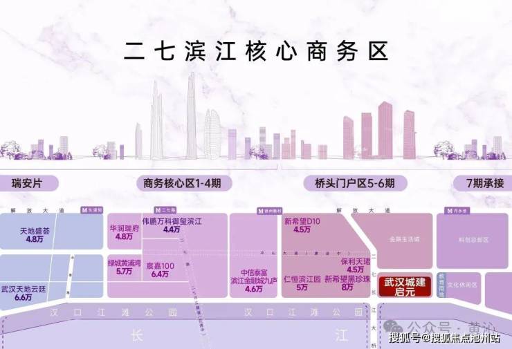◾国际大师力作, 政府顶级规划二七滨江商务区分7期开发,1-4期商务核心区由SOM、AECOM、NIKKEN、CBRE等统一规划;5-6期桥头总部门户区由ASGG、CBRE等统一规划;未来7期承接金融商务区与长江新区。