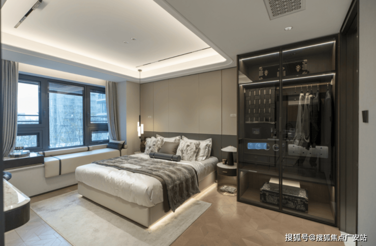 主卧面积约25㎡,配备独立衣帽间,营造出舒适的空间尺度感。