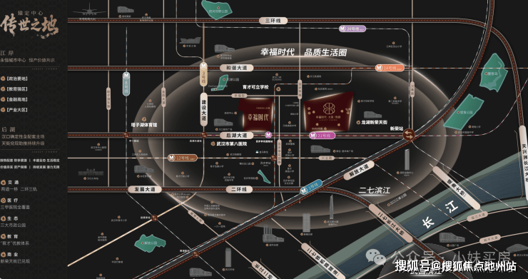 项目与新荣龙湖天街(在建中)一街之隔,社区自带花园式block商业街;周围汉口城市广场、金桥永旺、武汉天地壹方等城市级地标商圈汇聚。