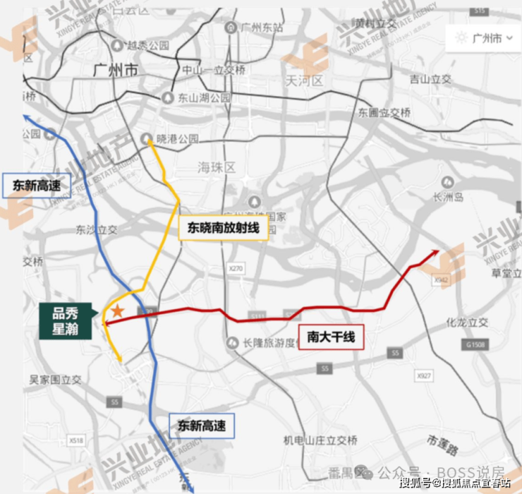 自驾方面,项目周边有已经开通的南大干线,建设中的东晓南放射线,和东新高速,南达广州主城区,北达广州南沙,佛山顺德,辐射范围非常之广;