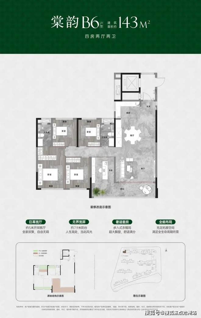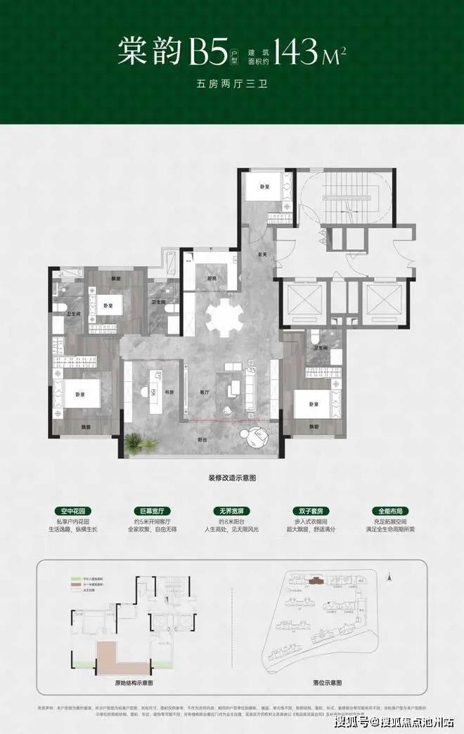 户型有125平、143平、200平,全部为新规产品。虽然没有邦泰观宸的户型那么夸张,但比起此前出品,还是进步明显。