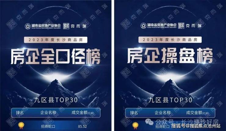 2.长沙代表项目:自2019年入湘,长沙招商蛇口始终围绕城市规划布局,于观沙岭/梅溪湖/滨江等热点板块,匠造了如江山境/天青府/臻境/滨江境等长沙红盘,深度赋能长沙的城市生长,位列【2023年度克而瑞长沙商品房房企全口径榜及房企操盘榜】榜首(来源:克而瑞)