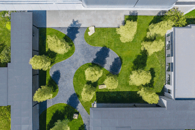 小区设计:整个建筑,就好像是从园林中长出来的一般。