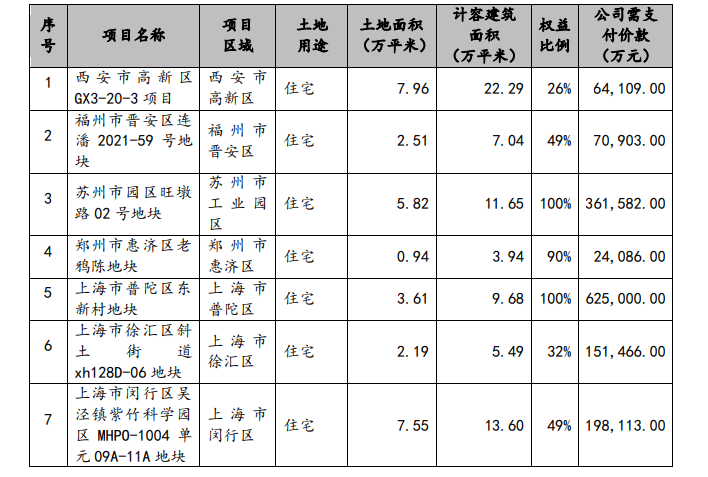 自2022年4月销售及购地情况简报披露以来,公司近期新增项目情况如下: