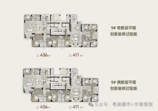 无论是正门的5块9米高的凿壁,还是9.9 米纵高的天际塔冠,都在强调“9”字,与未来20年走九运相呼应,寓意楼盘和业主行大运。