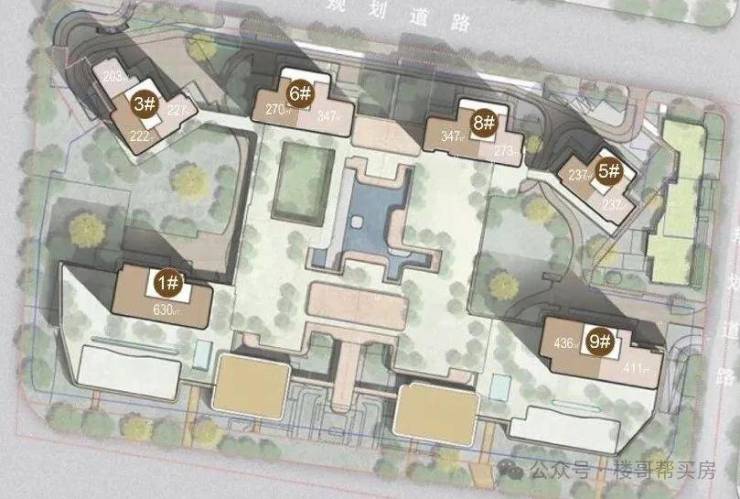 建筑布局:共6栋,采用围合式设计。