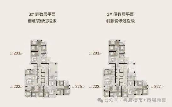 无论是3栋的203㎡、还是227㎡,都有自己独特的卖点。比如
