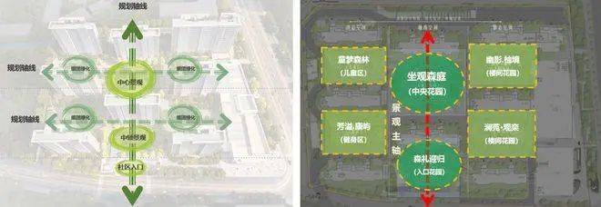 生态魅力(景观设计)整体设计为“一轴·一心·四园”: