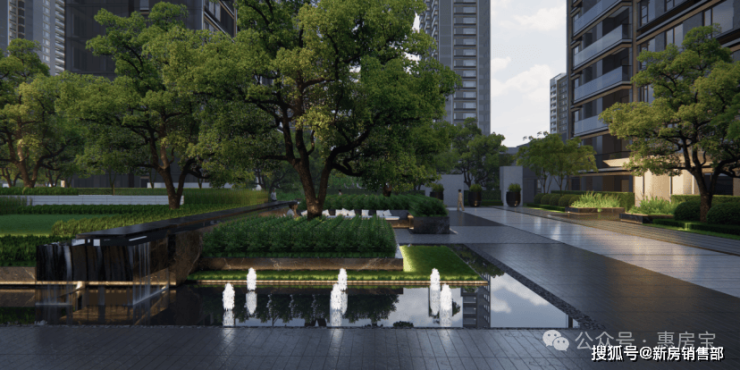 景观上: 因为这得天独厚的天赋,在景观打造上,社区内的景观体系与家门口的水岸滨河景观轴能够相互融合,开发商将自然的水岸植入社区景观营造中,让业主在家门口就能拥有沉浸式的度假风景。