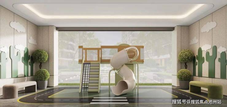 项目体量不大,只有4栋住宅,全楼栋架空层泛会所设计,打造江屿乐园、康体运动、乐活书吧、健身场域四大生活场景。