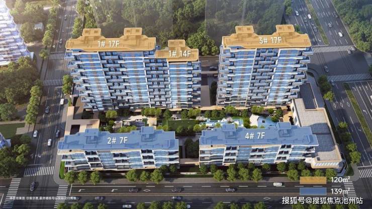 江海和鸣共规划4栋住宅202户,其中1、3号楼为17F高层(1号楼局部14F),户型为120㎡;2、4号楼为7F洋房,户型为139㎡,首层全架空,目前已公开位于江北弘阳广场C馆的城市展厅,预计最快9月底公开售楼处。