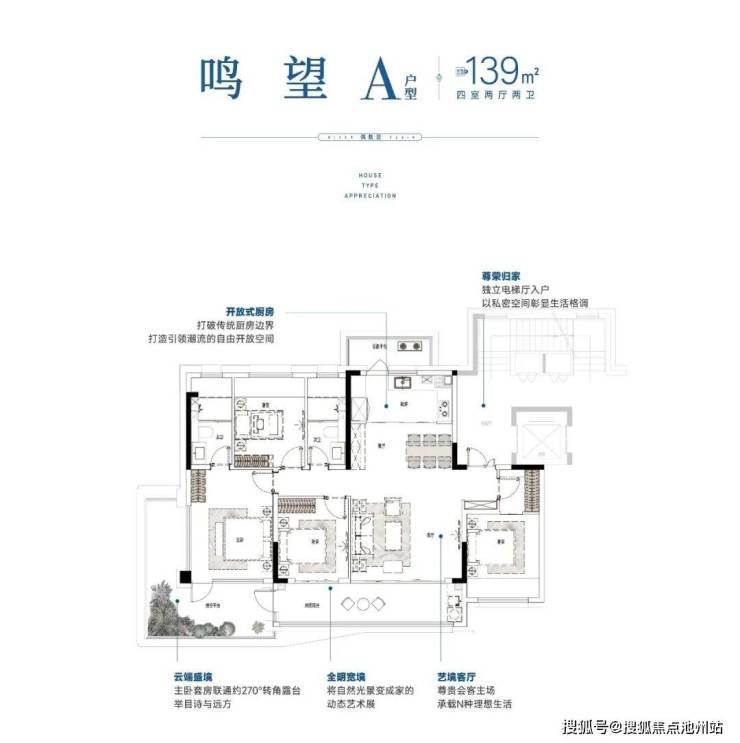 三开间朝南,约13.1m全明宽境,客餐厅一体化布局;