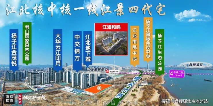 江海和鸣位于江北核中核板块,不远处就是江北市民中心和扬子江国际会议中心,占据烫金地段。楼盘正对长江和扬子江生态公园,距离长江岸线约300米,坐拥一线江景资源。