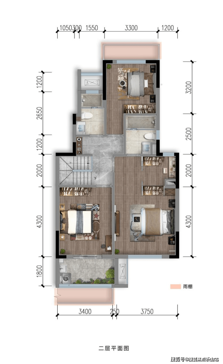 F2户型 中叠 3-4F 四室二厅三卫 建面约164.91㎡