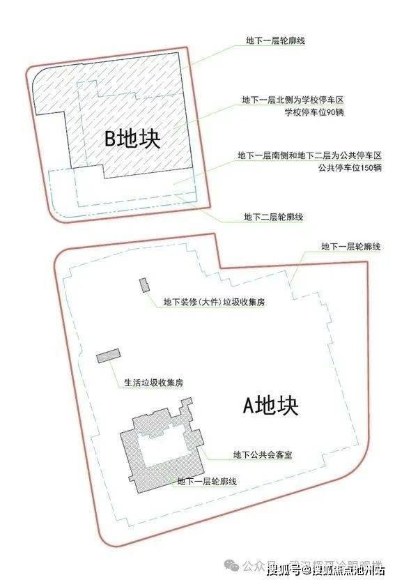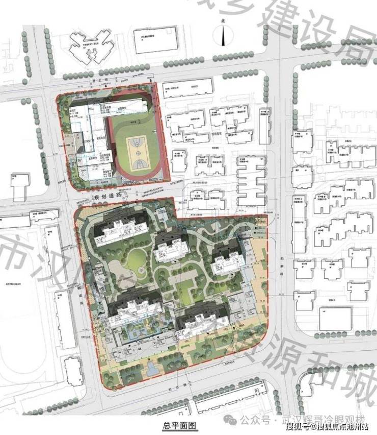 项目有两个地块组成:北侧的B地块为小学用地,规划一所18班制小学;南侧的A地块则是住宅用地,规划有5栋高层住宅,中间有规划道路隔开。