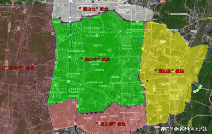 “观山东”板块范围,观山湖城市同城大道以东的区域,北临北二环及白云区分界,南临云岩区分界,更东至北站南北延伸铁路线范围。