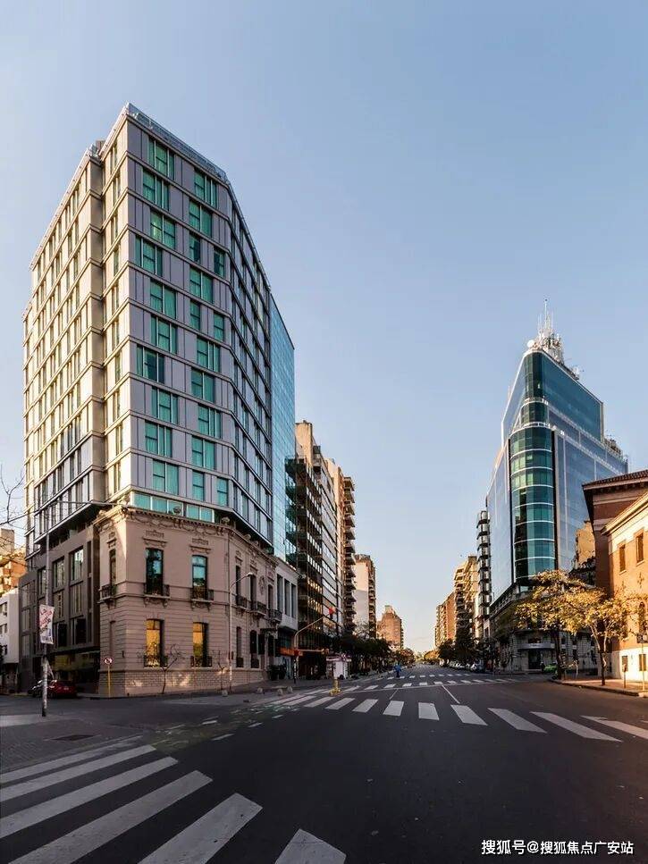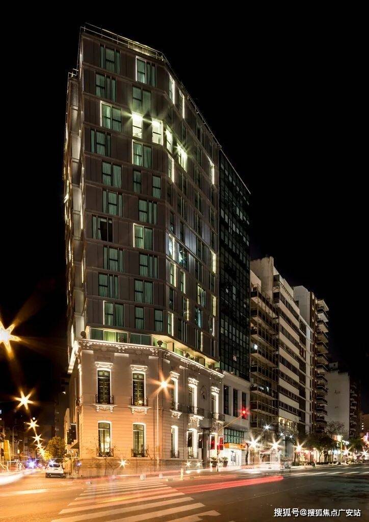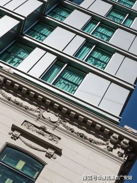 通过这种方式,酒店的前四层在原始立面后方构成现有建筑的一部分,从这里向上延伸其余楼层,外部由结构性玻璃墙覆盖。之后,在侧面街道的相邻地块进行了扩建,通过在底层、一层和二层实现项目连接,打造了一个大型会议厅、员工及服务入口,同时在屋顶新增了一个水疗中心,丰富了酒店的配套设施。其余楼层则设计了客房,与现有客房形成互补。