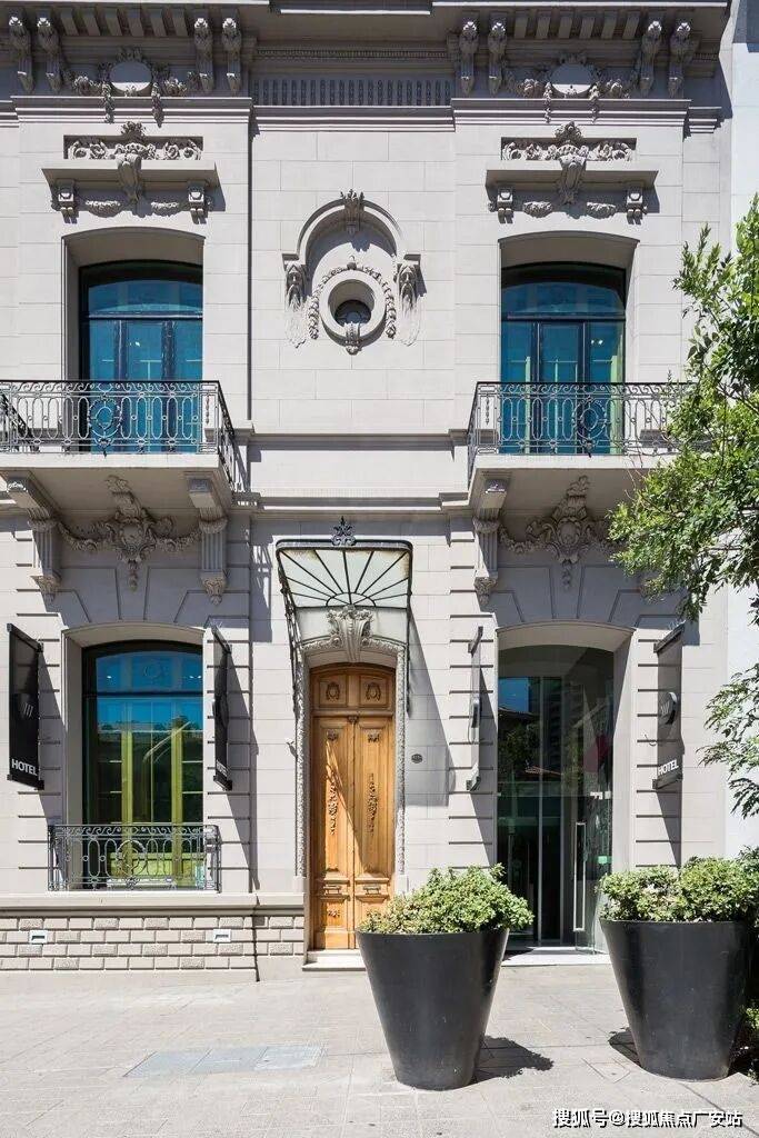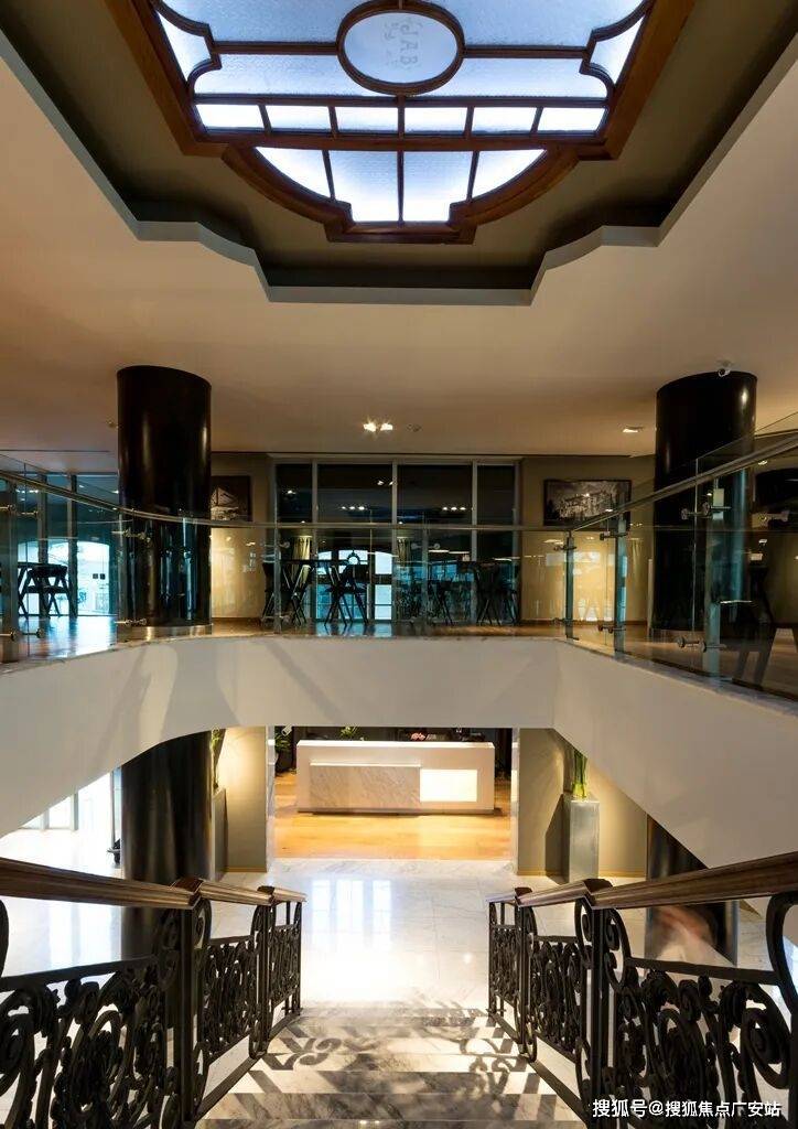 入后,可抵达酒店大堂,大堂因内部双层挑高而更为重要,在空间和物理上均与一层的早餐区相连。值得注意的是,除了伊里戈延大道一侧的立面和空间外,建筑原有的楼梯在内部被保留下来,兼具实用功能和雕塑感。由于其位置与大堂的双层挑高相契合,为空间注入了活力,并凸显了其建筑特质。