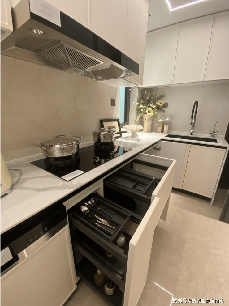 海上清和玺售楼处电话:400-000-0460转6666✔✔【预约热线】海上清和玺售楼处电话:400-000-0460转6666✔✔【预约热线】柜门白色烤漆面板,抽屉分区也都是帮大家细致划分,如多功能调味拉篮+谷物抽+碗碟拉篮等。岛台上配置可升降插座,铝合金抽屉,石材背景板的金属开放格实用性很强。