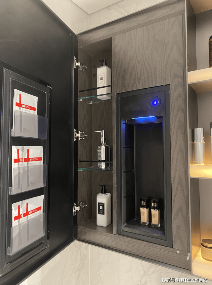 海上清和玺售楼处电话:400-000-0460转6666✔✔【预约热线】海上清和玺售楼处电话:400-000-0460转6666✔✔【预约热线】海上清和玺售楼处电话:400-000-0460转6666✔✔【预约热线】奢石台面,皮革饰面柜抽屉,侧端设置金属收纳开放格;定制镜柜,中间的透光玉石直接提升了高级感,镜柜内部配备了美妆冰箱+美妆灯条+轨道收纳!