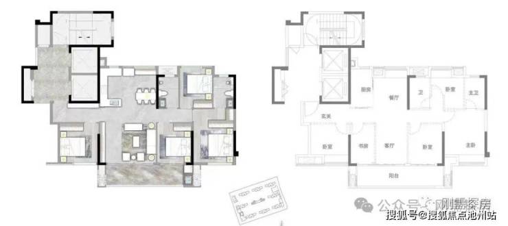 从户型布局对比来看,基本接近,差异就是玺云的客厅面宽更大。