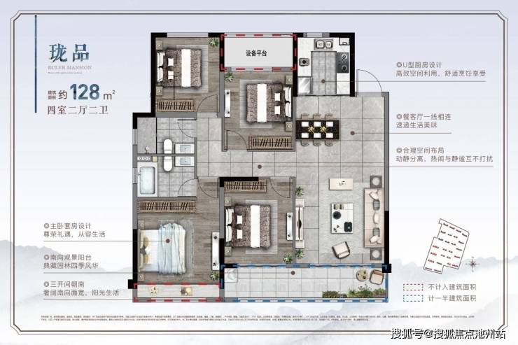 新鸿君品雅苑 平层户型·建面/128㎡