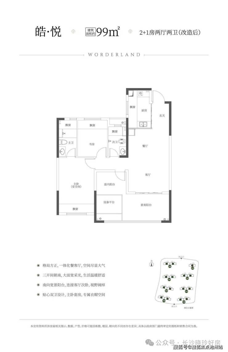 首发新规建筑面积约99㎡2+1房、约3.9m客厅开间、三开间朝南、得房率约102%