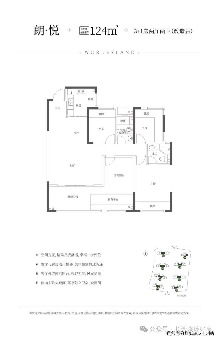 建筑面积约124㎡3+1房、约5.4m客厅开间、小面积大格局、得房率约101%