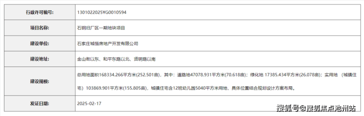 据石家庄市自然资源和规划局官网最新消息,该项目新获建设用地规划许可证。获证信息具体如下: