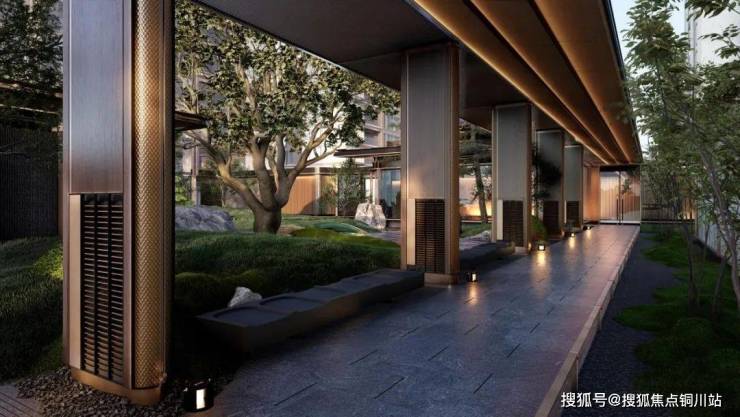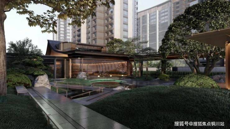 景观示范区延续了建发一贯的造园理念,园林精髓犹在,山石、水景、长廊、曲径,处处透露着江南的气息。但创新特色不在于传统的假山、叠石或亭台楼阁,而是选用更接近于自然的原色,中式符号雕刻于景墙、大门、地面铺装上。