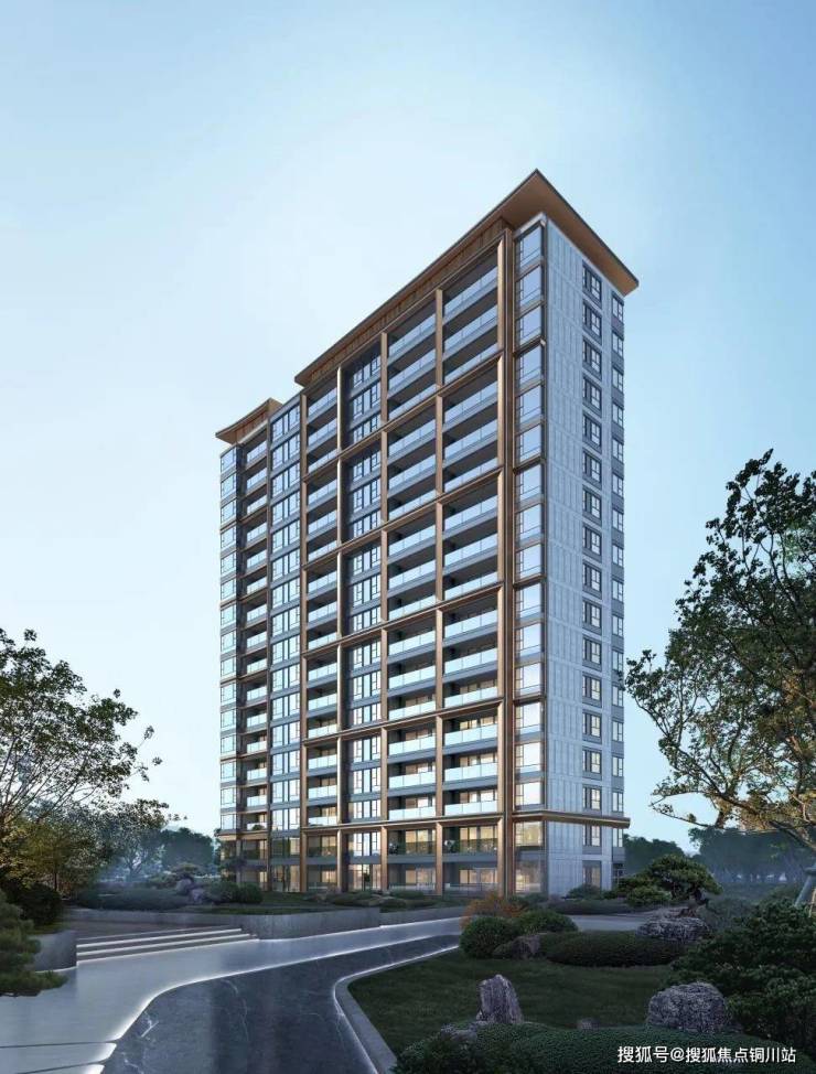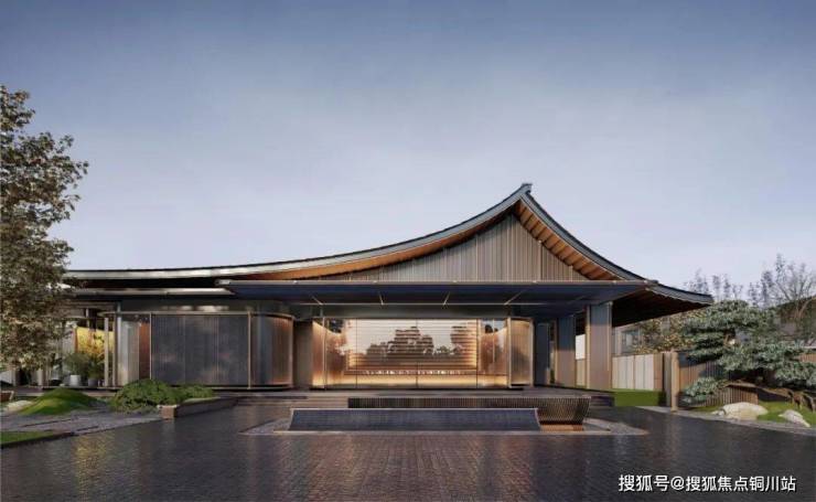 外立面诗意东方风格,具有识别性和独特性,主立面主要嵌以香槟色铝板斜切框套,造型细节更丰富,更凸显贵重感。