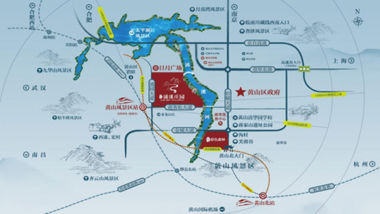 政府重点规划黄山东门(谭家桥)及黄山北门(本项目所在地-甘棠)。东门规划总投资124亿元建设T1轻轨,全线长约50.6公里,共设站9座,线路起自黄山北站,终至黄山风景区东大门谭家桥,沿线串联潜口、呈坎、富溪、黄山风景区、翡翠谷、黄山东大门谭家桥等主要旅游景区。另在建“一索道一中心”(云谷索道下半段项目和黄山东大门综合服务中心),两个项目是黄山东大门建设的引领性和关键性工程,计划营运时间为2025年。另规划T2由黄山东经黄山区到达太平湖景区,途经甘棠镇、耿城镇,规划T3串联宏村、黟县、齐云山等,整体形成闭环的旅游交通网络。我们项目距离黄山东门仅20公里,约20分钟车程。黄山北门的建设也如火如荼,黄山区“十三五”规划中,将亚洲最长的索道——黄山北大门太平索道及游客集散中心下移计划明确列出。目前游客集散中心已建设完成,距离项目仅2公里。市政府也提出了“打造黄山北大门,建设未来新汤口”口号,大力推动黄山区城市的发展及旅游产业的发展。