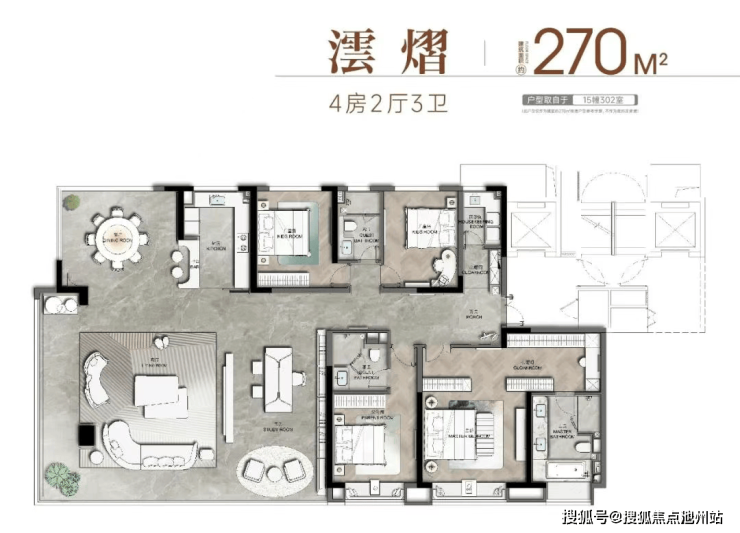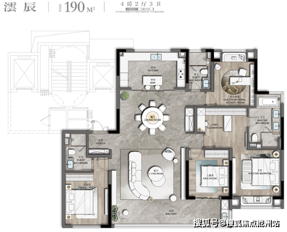 建面约270㎡户型气场超强,近20米L型超大阳台、约130㎡MAX宴会厅域,仪式感与诗意感一举两得;