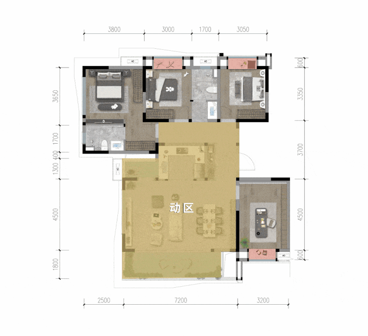 山河赋洋房产品展现出极强的产品力,我们结合建面约143.5㎡套四户型来感受下。